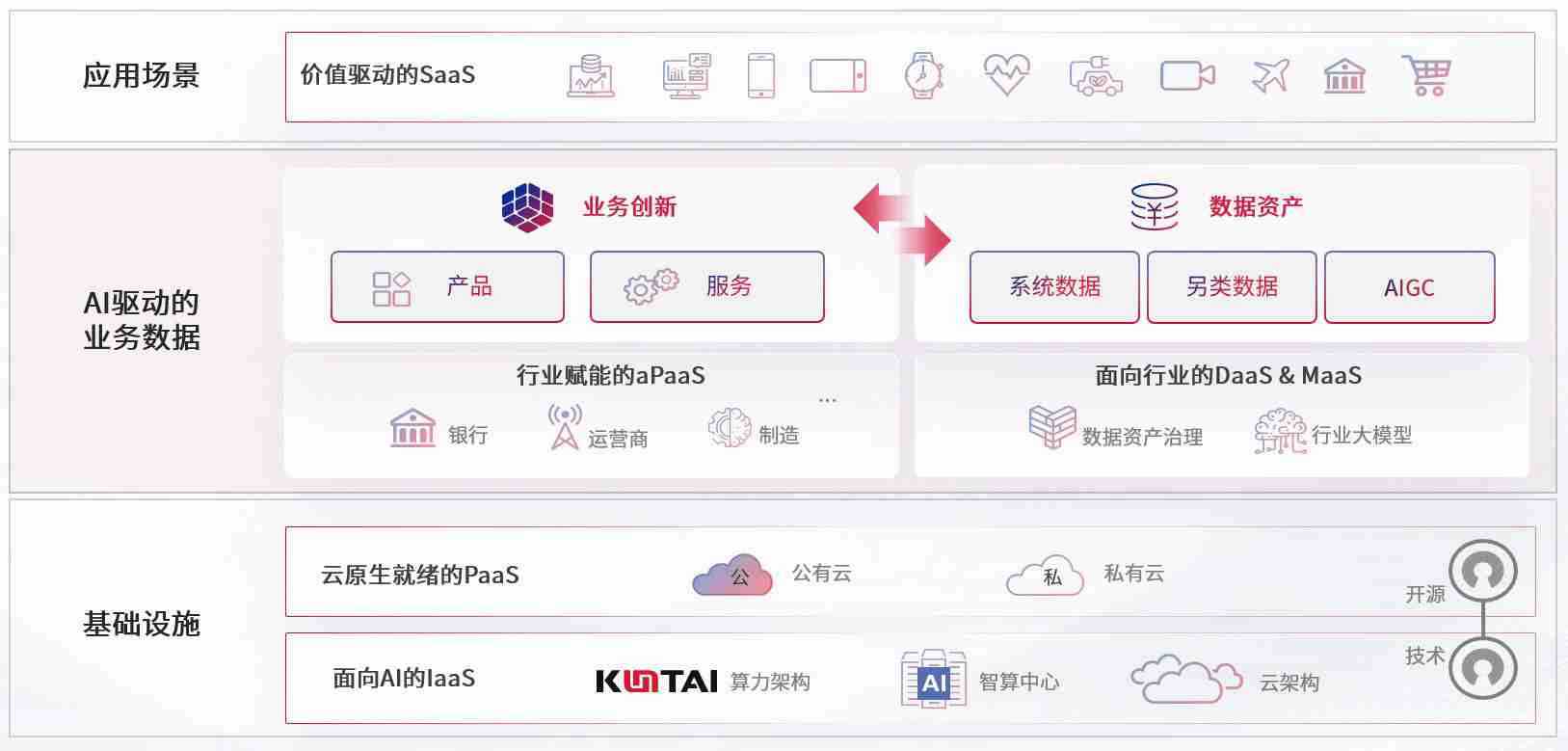 数字时代,,,,围绕企业数字化转型的关键要素,,,拉菲2平台数码开创性的提出数云融合战略和技术体系框架,,,着力在云原生、、、数字原生、、、AI原生和信创产业上架构产品和服务能力,,,,为处在不同数字化转型阶段的快消零售、、汽车、、金融、、、医疗、、、、政企、、、、教育、、运营商等行业客户提供泛在的敏捷IT能力和融合的数据驱动能力,,,构建跨界融合创新的数字业务场景和新业务模式,,助力企业级客户建立面向未来的核心能力和竞争优势,,全面推动社会的数字化、、、智能化转型升级。。